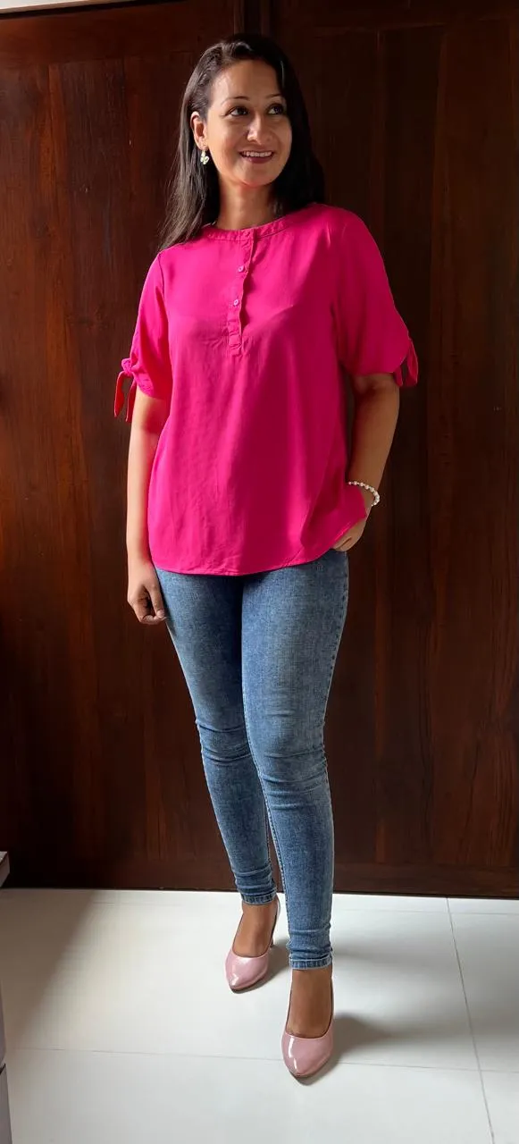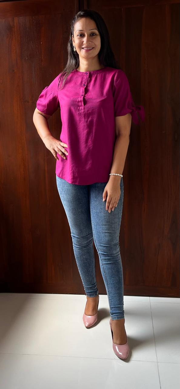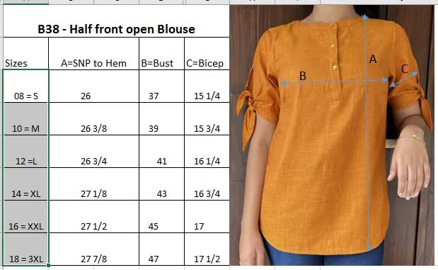 A stylish half front–open blouse featuring a minimal button placket, offering a modern twist on traditional design with easy wear and elegant appeal.