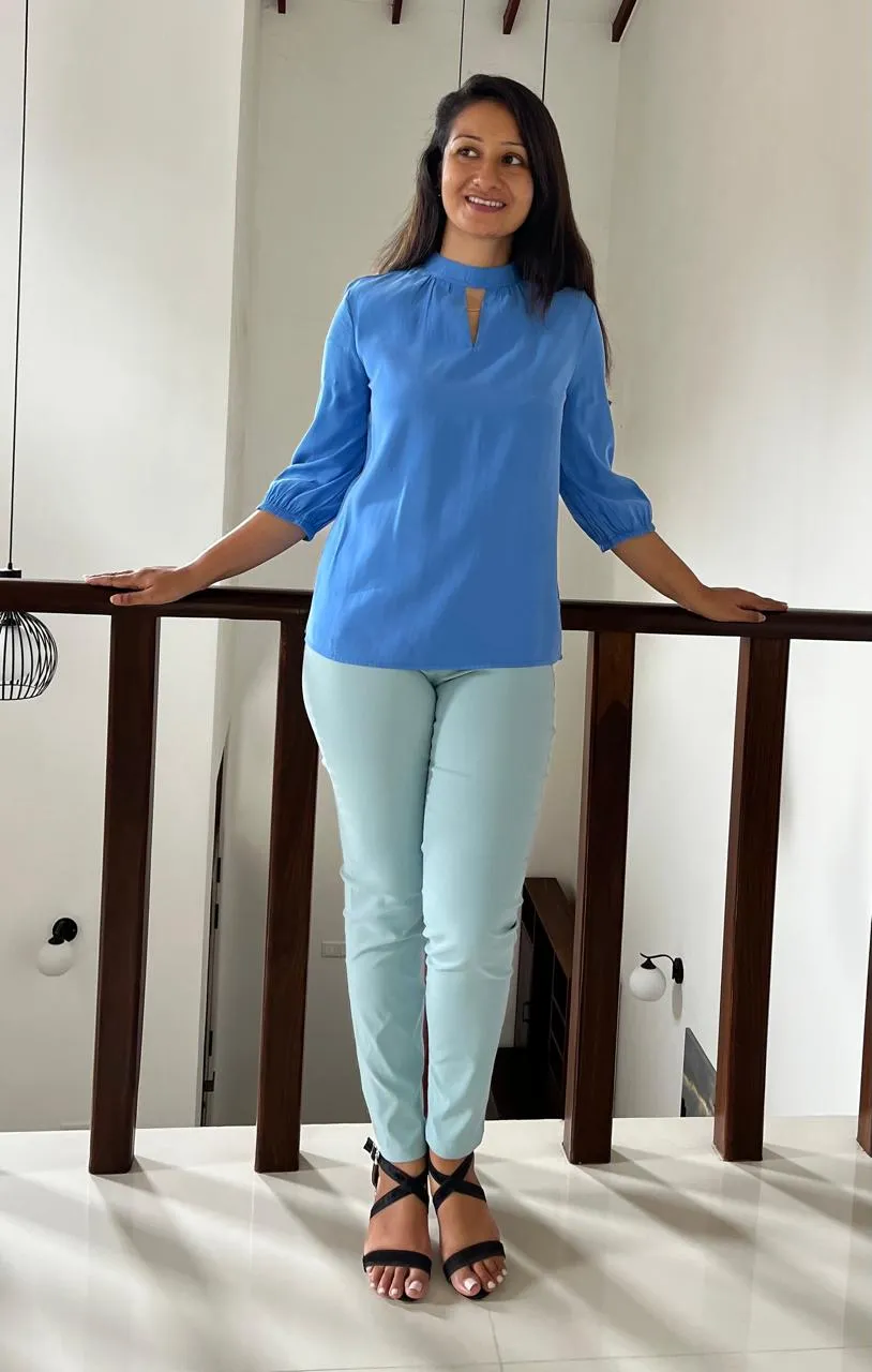 This Front V-Hole Colored Blouse is a bold and stylish piece for your wardrobe. Featuring a unique V-shaped cutout at the front, it adds a modern twist to a classic blouse design. Available in vibrant colors, it’s perfect for elevating your  evening look while offering a comfortable and flattering fit.