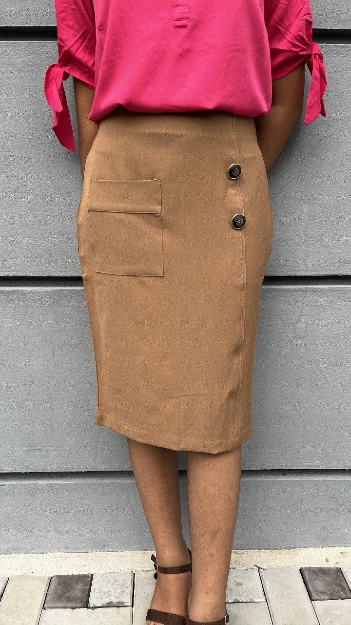 The One Pocket Office Skirt offers a sleek and functional design, perfect for professional settings. Featuring a single, strategically placed pocket for added convenience, this skirt combines practicality with a sharp, tailored look. Its simple, flattering cut makes it versatile for pairing you stay stylish and comfortable throughout the workday.